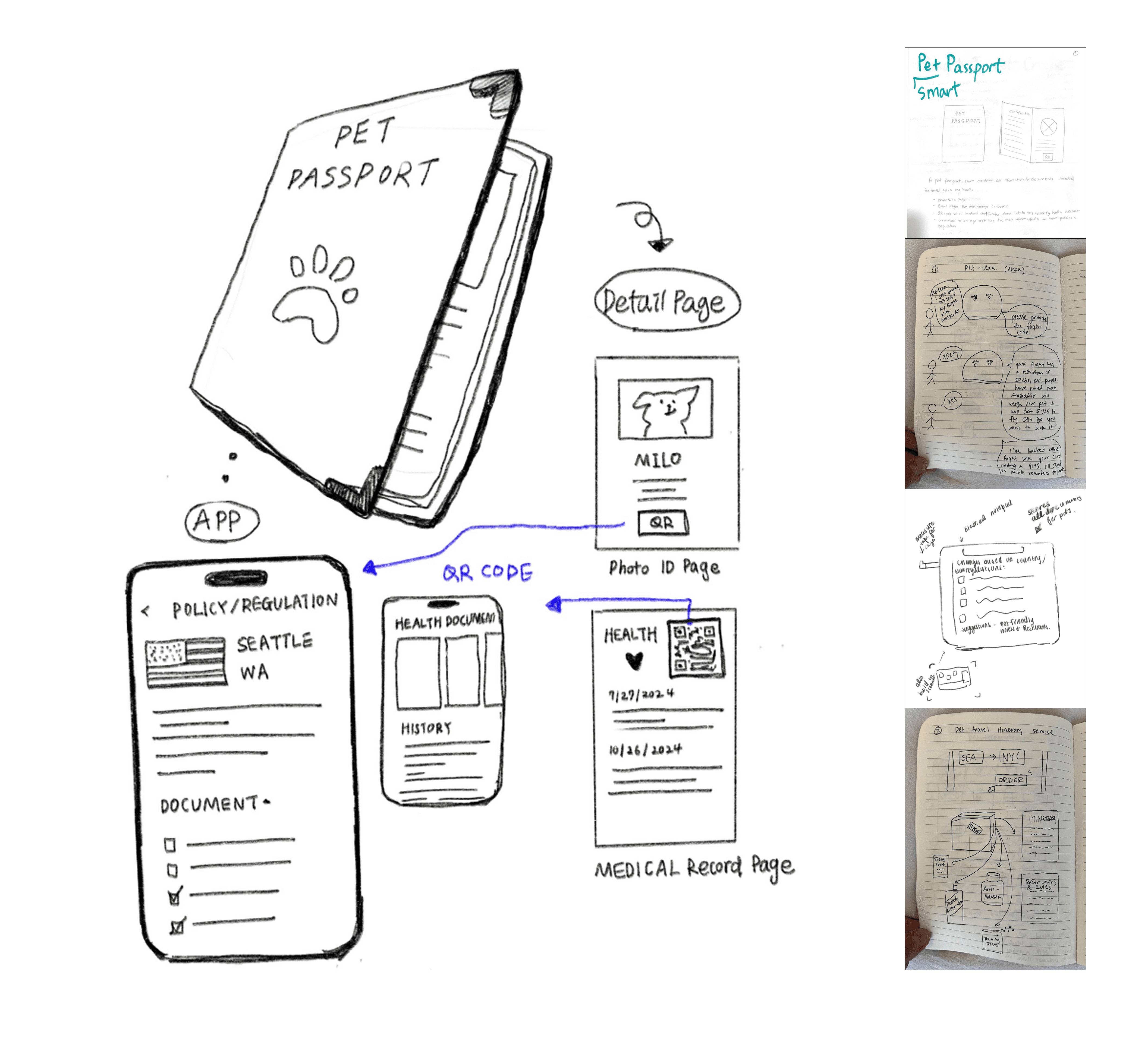 Drawing inspiration passports and recent technology trends, we developed an identification system that comprised of a physical QR identification band and data cloud to interconnect airports with digitalized vet documentation.