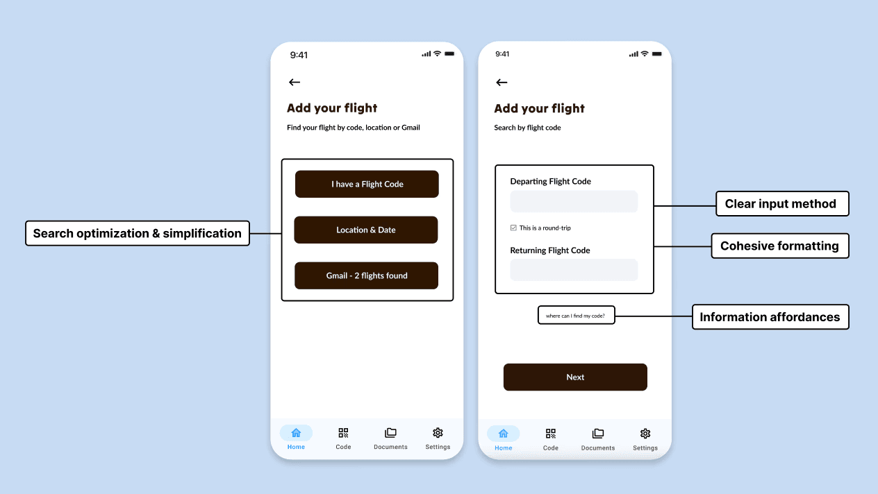 By contextualizing the experience, we refined the key features to better address user needs.