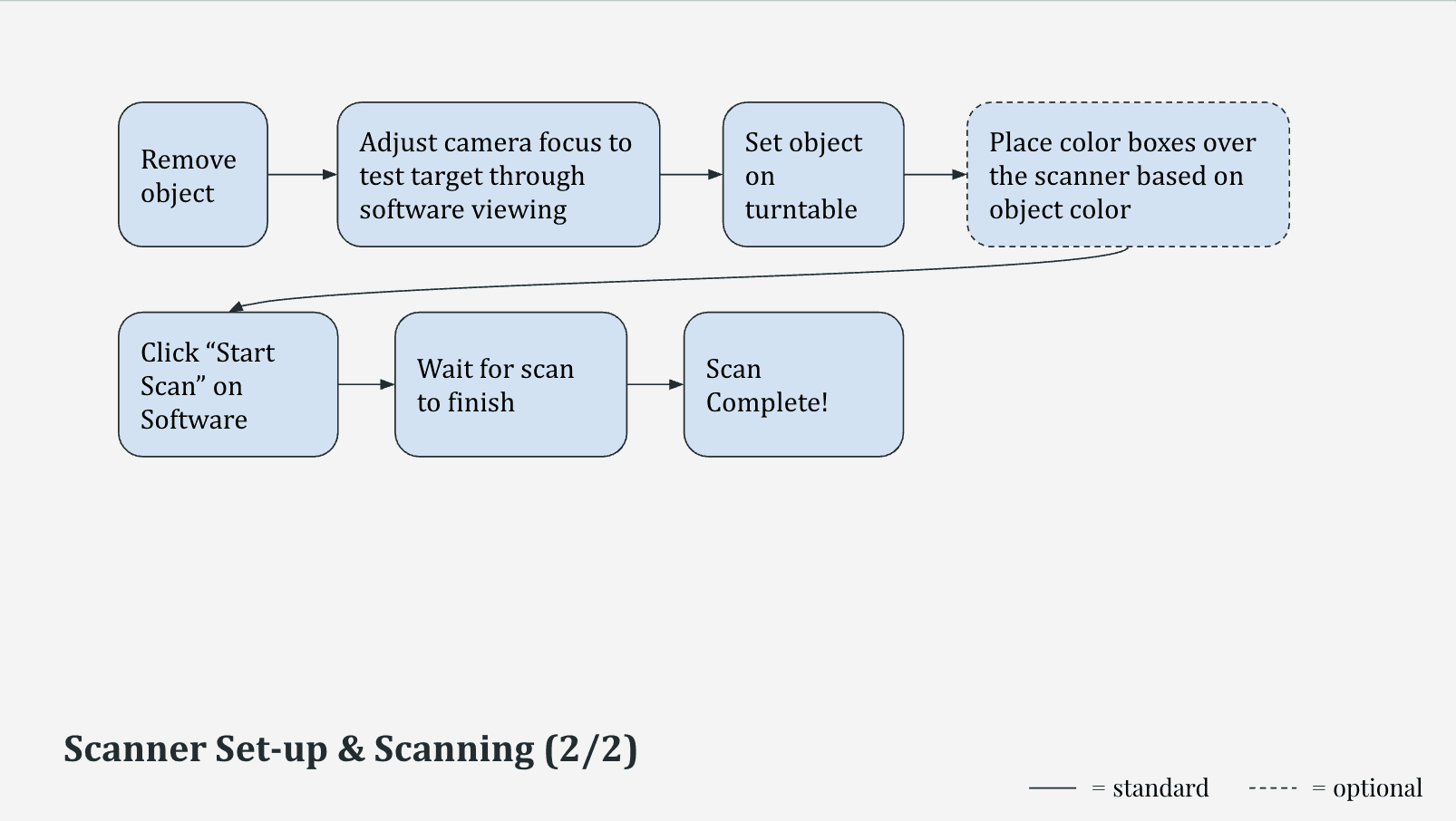 By incorporating contrasting backgrounds and point-cloud data plotting software, we significantly reduced user errors related to object misalignment and inaccurate scanning, leading to a smoother and more reliable user experience. We successfully validated all key features, confirming they met the initial requirements and solving the problems outlined during research.